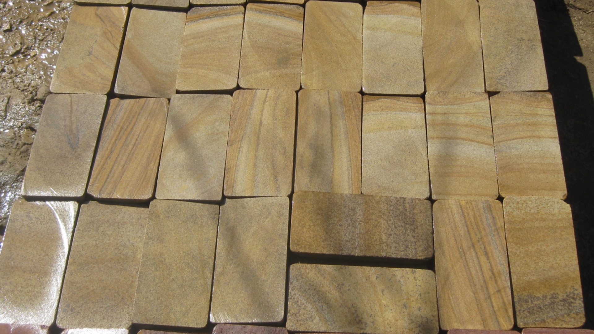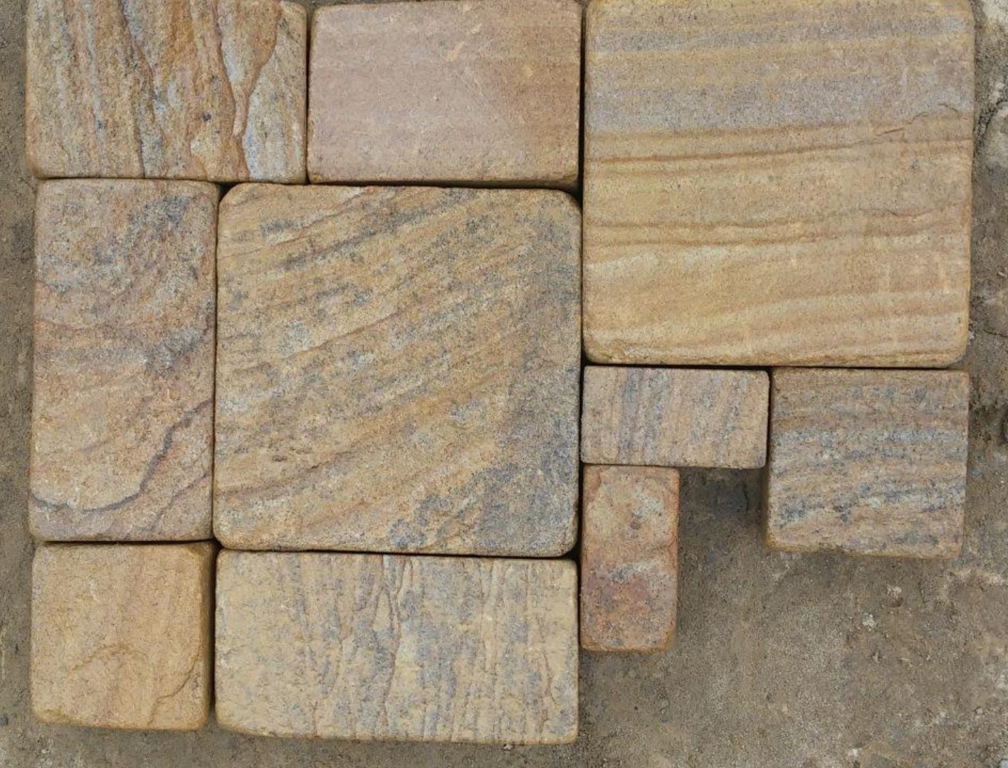Песчаник речной в виде блоков и плитняка для благоустройства фото от Камень Клуб