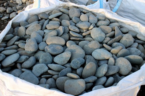 Галька речная плоская (темно-серая) фр. 100-200-300 мм.
