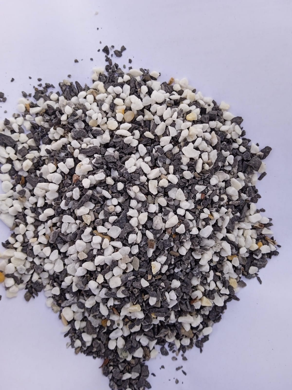 Kamenclub.ru: мраморная крошка (щебень галтованный микс:: белый-черный) фр.5-10 мм купить в Новороссийске - заказать природный камень по низким ценам оптом с доставкой от производителя - kamenclub.ru